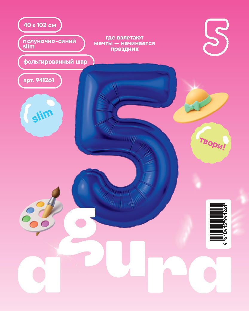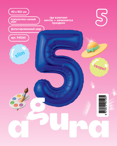 Аг 40''/102 см, Цифра Slim Полуночно-синий "5" (в упаковке)